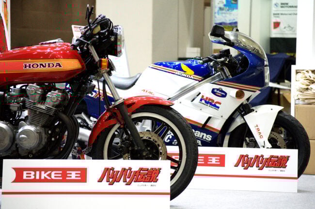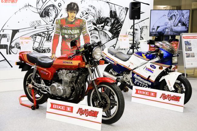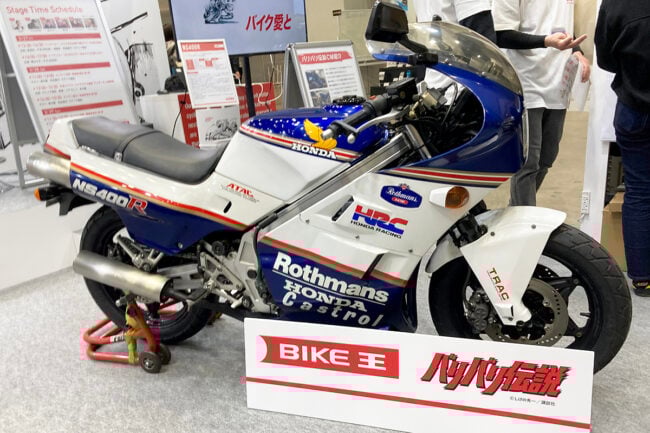 注目の展示内容はまず、ホンダ・CB750F(バリ伝仕様)とホンダ・NS400Rの2台の実車展示。東京モーターサイクルショーで見逃してしまった人や、もっとゆっくり、じっくりと穴が開くほど眺めたかった、という人はぜひこの機会をご利用ください。