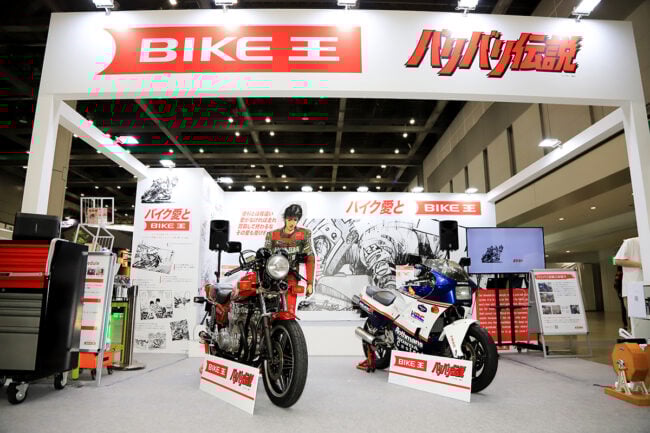 「バリバリ伝説」ブースでは他にもSHOEIのコラボヘルメット展示やFAITH inc.によるグッズ販売も行われています。他作品としては「キリン」、「逮捕しちゃうぞ」ブースが展開されます。