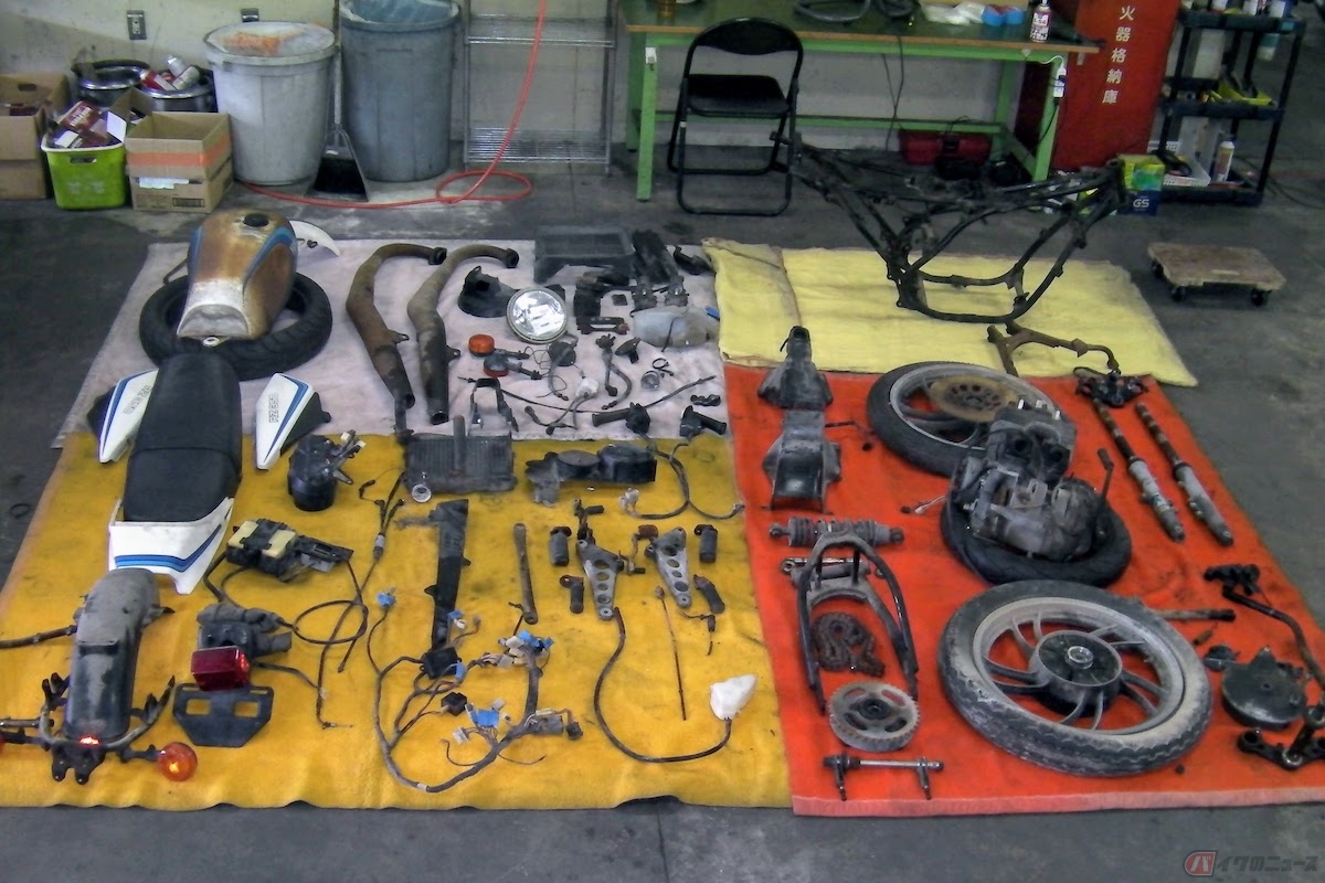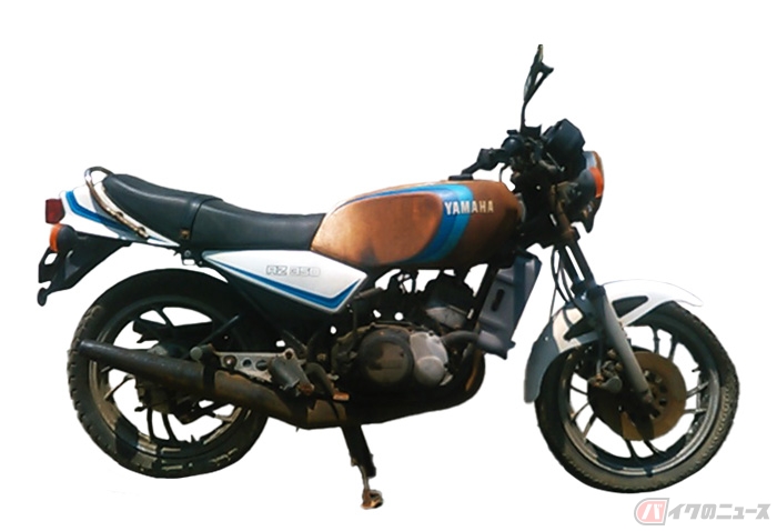 バイク王はバイクのさまざまな魅力を伝えるため、毎年各地で絶版車試乗会を開催してきましたが、そこで試乗車として使われているヤマハ「RZ350」は、買取の時点では経年劣化により激しく傷んだ状態でした。