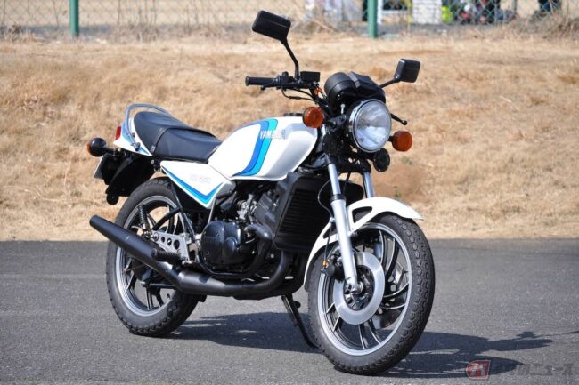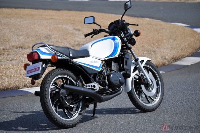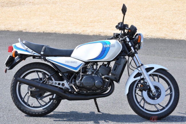1980年に発売され、爆発的なヒットを記録した「RZ250」の翌年、1981年に国内市場に登場したRZ350は、RZ250をベースにボアを広げた排気量347ccの2ストロークエンジンやフロントブレーキのダブルディスク化などが行われたネイキッドモデルです。