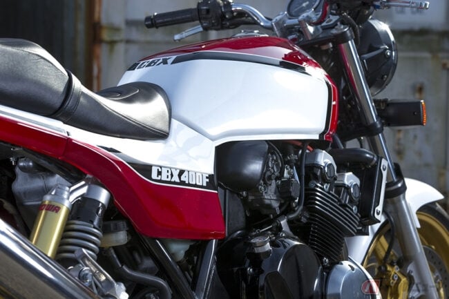 1981年に登場した「CBX400F」は、世界で初めてのブレーキトルクセンサー型アンチダイブ機構(TRAC)やインボードベンチレーテッドディスクブレーキなどを備えたモデルで、発売から40年以上経つ昨今では、当時の新車価格(ソリッドカラー仕様車 47万円/ツートンカラー仕様車 48万5000円)の10倍の値段がつけられることもあるプレミアムな存在となっています。