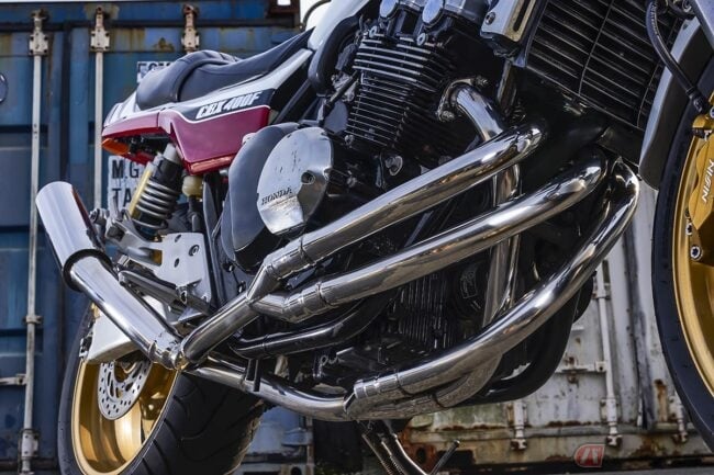 これに登場する「CB400SF TYPE-X」は、2022年をもって生産終了がアナウンスされている4気筒エンジン搭載モデル「CB400SFVシリーズ」に、人気の絶版車であるホンダ「CBX400F」のスタイルを再現できるドレミコレクション製の外装キットを装備したカスタム車両です。