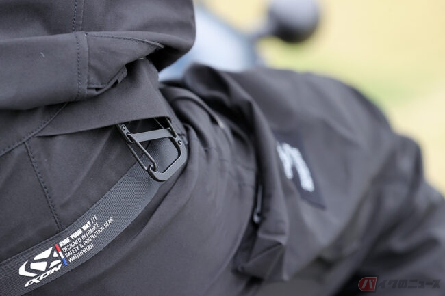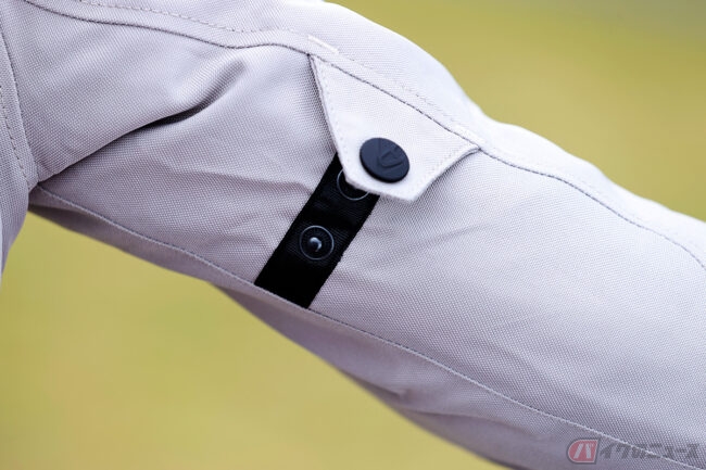 袖、肘、裾には走行中のバタつきや風の侵入を防ぐためのアジャスターが取り付けられており、高速走行や長距離走行時のストレスを緩和してくれます。