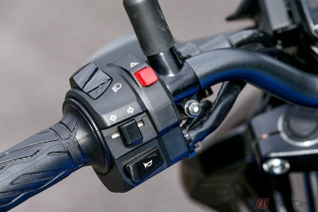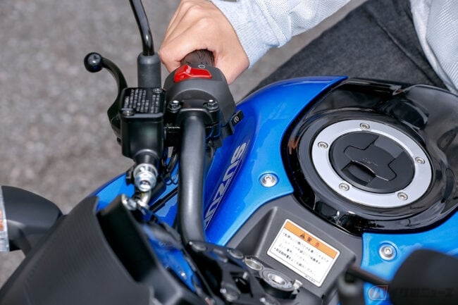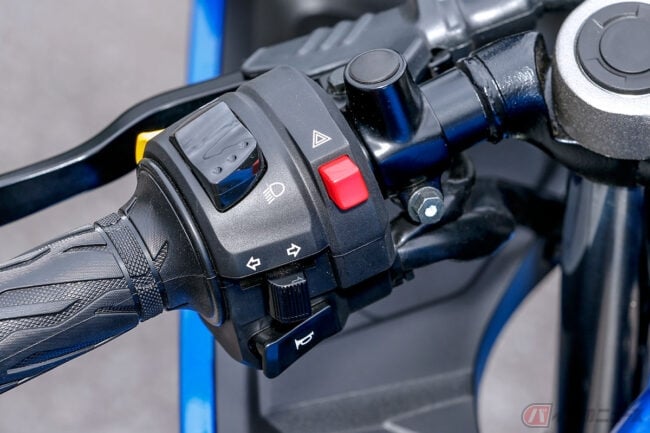 その操作性はSも負けていません。バーハンドルなので大きく切れますし、ハンドルを握りつつもウィンカーなどのボタンに指が届きやすいので、急なスイッチ操作にもすぐ反応できます。