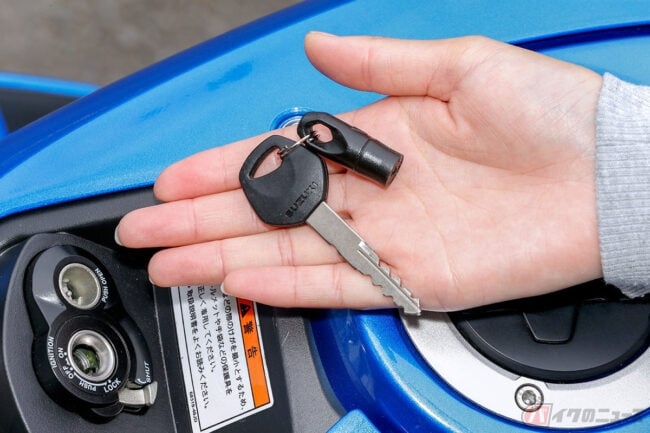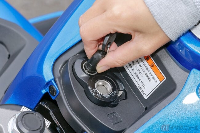 さらに、RとSは共にメインキーにいたずら防止のためのシャターが装備されています。キーシリンダーの下にあるツマミを押し上げると、シリンダーのシャッターが閉じて鍵穴が見えなくなるというものです。以前乗っていたスクーターも鍵穴のシャッターが付いていたので、なんだかエモいというか懐かしい気持ちになりました。