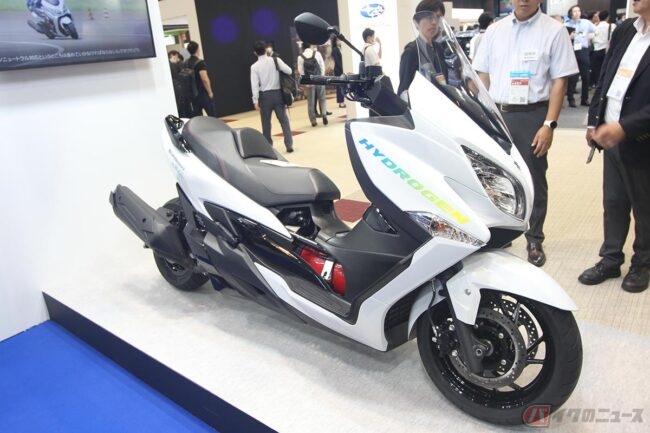 2023.10.05スズキが、2023年10月26日から11月5日まで、東京ビッグサイトで開催されるJAPAN MOBILITY SHOW2023に、二輪技術展示予定の「水素エンジンバーグマン試験車両」を公開しました。