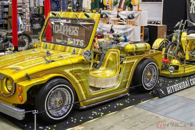 ホンダ「スーパーカブ」と思いきや!? スズキ「初代ジムニー」&「シャコタントレーラー」に鎮座した「原付チョッパー」の正体とは?