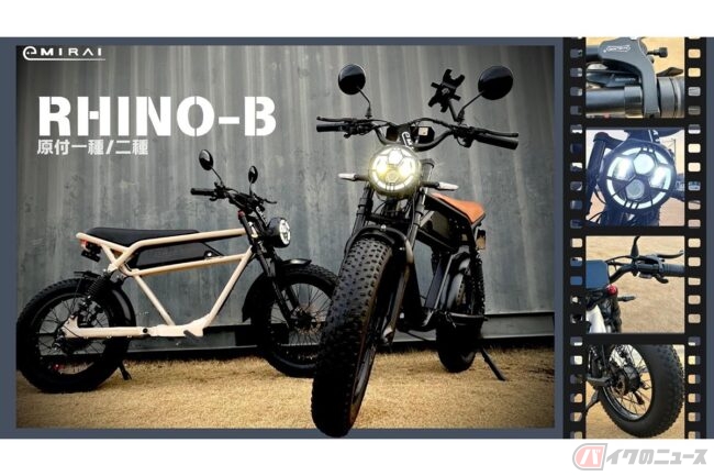 原付一種と二種が選べる自転車みたいな電動バイク!? 5年保証の高品質、車重26kg、雪道も走れる「RHINO B」が登場 航続距離は最大70km