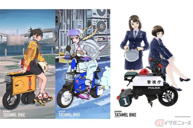 「キルラキル」「ダーリン・イン・ザ・フランキス」に「逮捕しちゃうぞ」「ああっ女神さま」など人気アニメ・漫画とのコラボが実現!! 普通免許で乗れる折りたたみ原付バイク「ICOMA タタメルバイク」コラボスケールキット発売