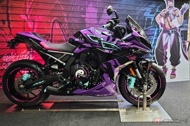 ゲームのキャラをバイクでイメージ!? 世界中で人気の格ゲー「ストリートファイター6」とスズキのコラボ「GSX-8R Tuned by JURI」を「東京ゲームショウ2025」に展示