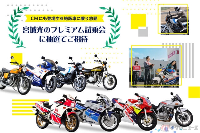 CM登場の絶版車に乗れる! バイク王が宮城光さんと絶版車のコラボ企画「プレミアム試乗会」を開催