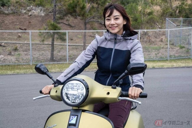 軽くて扱いやすくデザイン性も高いベスパ「GTS 300 SuperSport」にアクティブバイク女子の指出瑞貴が挑戦! 私的イケメン度は星4つ!!
