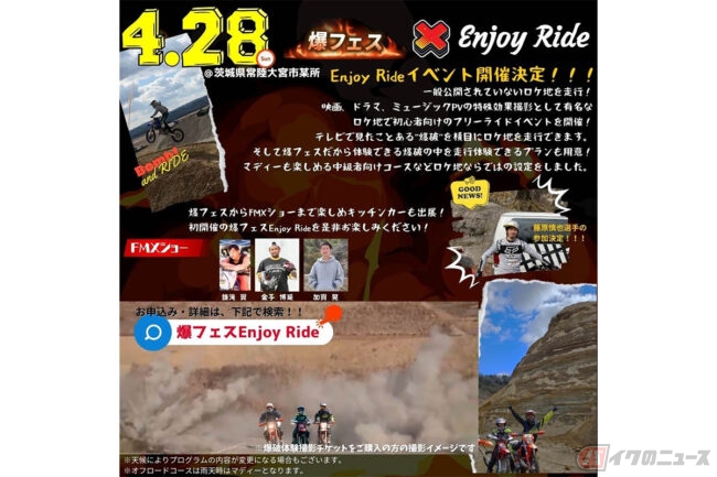 見るだけでも楽しめる体験型オフロードイベント!爆フェスIII Enjoy Ride in 茨城県常陸大宮市の開催が決定