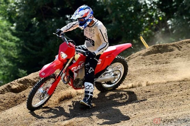 赤い車体が戦闘力の高さ示すGASGAS「EC250F」!! 3倍ではないけれど、操る楽しさはケタ違い!?