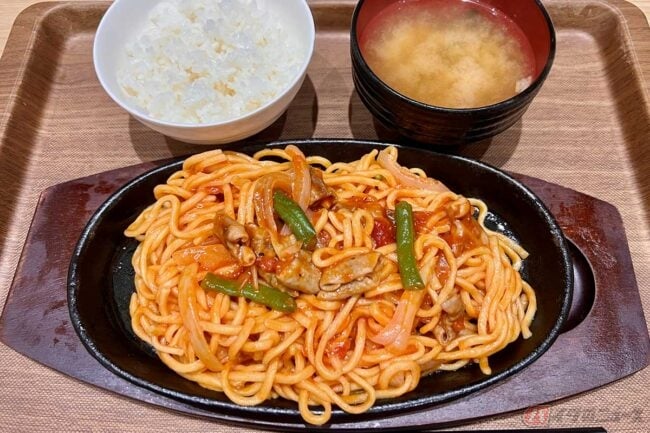 ご飯のおかずに「ナポリタン」!? 圏央道「厚木PA」で異色のダブル炭水化物定食に挑戦!! バイクで行く高速道路グルメ