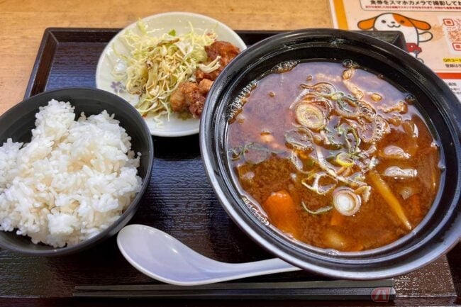 “豚汁に八丁みそ”はアリ? 東名「守山PA」の期間限定PA飯は白くない見た目で思わずビックリ 濃厚具沢山の味わいに大満足!! バイクで行く高速道路グルメ