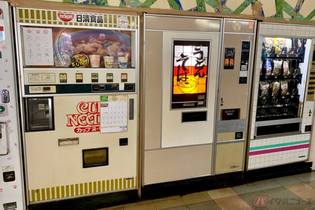 2024.06.16現在はコンビニや大型スーパー、ファーストフード店でいつでも食べものが買える時代ですが、かつてはコインを投入して温かいそば、うどん、ハンバーガーなどが出てくる昭和レトロな調理自動販売機が存在していました。そんなレトロ自販機店舗へ、久しぶりに訪れてみました。