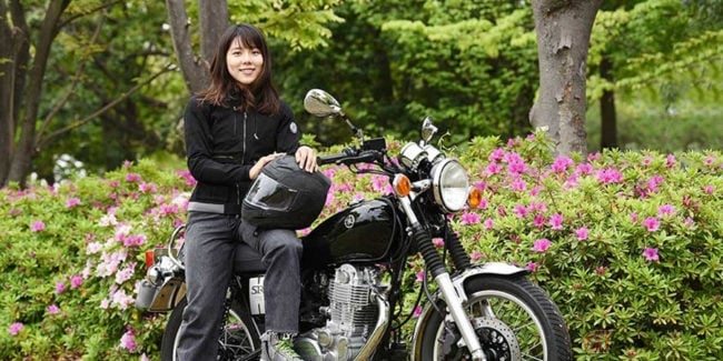 「小野木里奈」ヤマハSR400に試乗! カタカタとしたエンジン音が可愛らしい一台