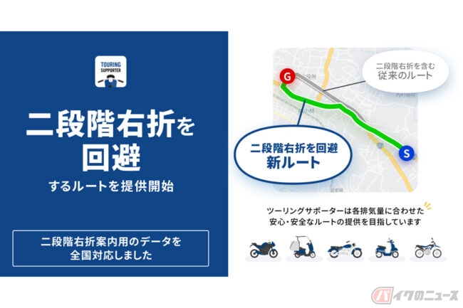 原付一種タイダーに朗報! バイク専用ナビゲーションアプリ「ツーリングサポーター」にて「二段階右折回避ルート」提供開始