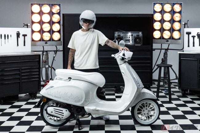 全身真っ白!? ジャスティン・ビーバーとベスパのコラボモデル登場 ベース車両は「スプリント150」