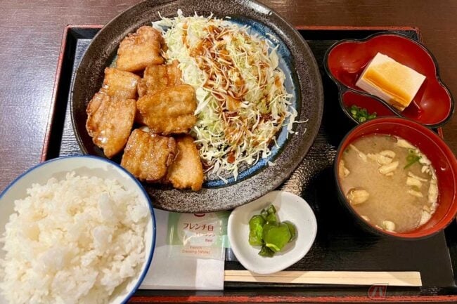 2022.08.10新東名高速道路で東京へ向かう途中、夜に立ち寄った「NEOPASA清水」(上下集約)でおすすめメニューだという「富士山 唐揚げ定食」を発見、実食しました。