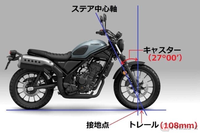 2023.08.31バイクのカタログや、メーカーHPに掲載されている「スペック」や「仕様」、「諸元」の表には、購入時の参考やライバル車との性能比較など、役立つ情報が含まれています。「キャスター」と「トレール」は軽快性と安定性に大きく影響すると言うけれど……。