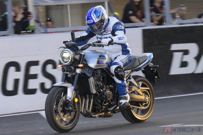 ついに走った!! 大注目のホンダ「CB1000F」が“走る姿”公開 SNSでは「さすがにいい音する」「写真で見るよりカッコいい」「跨ったらシート低めでスリム」と反響