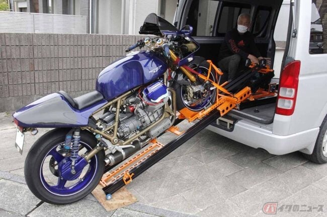 2024.09.22以前はハイエースでしたが、現在は、軽ワゴンのサンバーディアスで「軽トランポ生活!!」を楽しんでいる私です。この企画では私とサンバーの動向をリポートしていますが、ここでは、スピンオフ企画として、200系ハイエースのスーパーロングに取り付けられた装備を紹介します。トランポ荷室にバイクを積載する際には、大型モデルかつ重量車であればあるほど、押し上げ積み込みには、大きなチカラが必要になります。そんな積載時に必要なチカラを「ウインチ利用」によって軽減しつつ、しかもその動力をコードレスの電動ドリルで行うため、装備も実にシンプルなのが「neo-dyneネオダイン」になります。