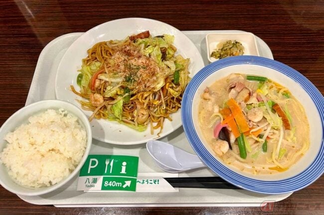 目の前で展開される「炭水化物祭」 もはや「背徳」を超えた「禁断」 バイクで行く高速道路グルメ 首都高「八潮PA」