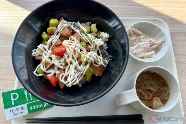 スパムとアボカドの相性が想像以上に抜群だった! 首都高「代々木PA」の限定丼に大満足 バイクで行く高速道路グルメ